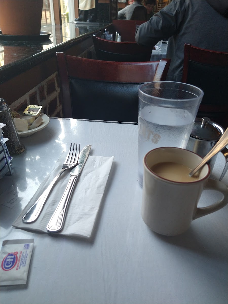 A neighborhood restaurant… I guess it's a throw-back of restaurants: Warm, friendly, no exaggerate decor kind-of-place... -servers: kind, polite, and attentive Food: Dinner Appetizer – crabcakes-Wow! Entrée-NY Steak, broccolini, mashed potatoes, a gravy mushroom sauce ladled over my Steak Dinner was a real treat-Priced just right... Dessert – vanilla ice cream, and bread pudding-yummy... Next day... Breakfast-Eggs Benedict/Crab-Awesome W/side of Apple Sausage-large links! -Latte -Chocolate milk; made with chocolate syrup-my favorite In closing... Sometimes simplicity is easy, kind, and genius. Check it out... Bon appétit